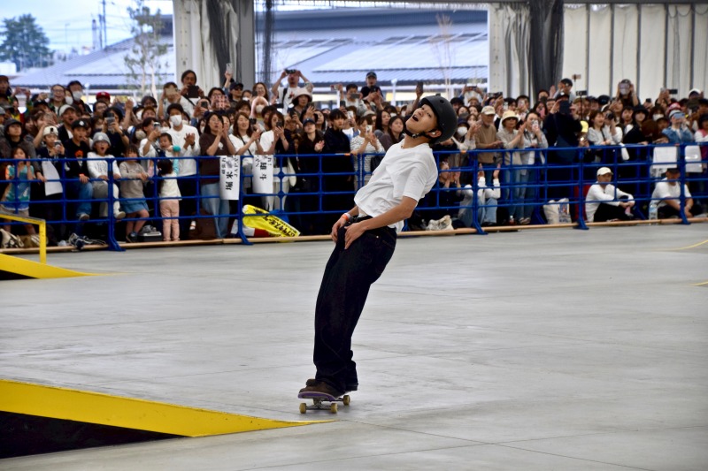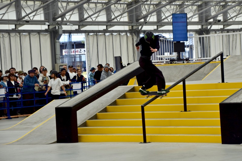 最後の最後に大技のキャバレリアルキックフリップ バックサイドリップスライドを決めきって大会を締めくくった。