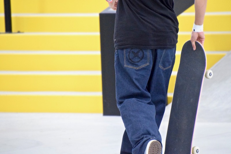 すでに発売されている、家紋ロゴ入りのスニーカーやTシャツは有名だが、今大会はジーンズにも家紋入りで気合いが入る堀米雄斗は、予選を2位通過、準決勝は3位で決勝へ臨んだ。