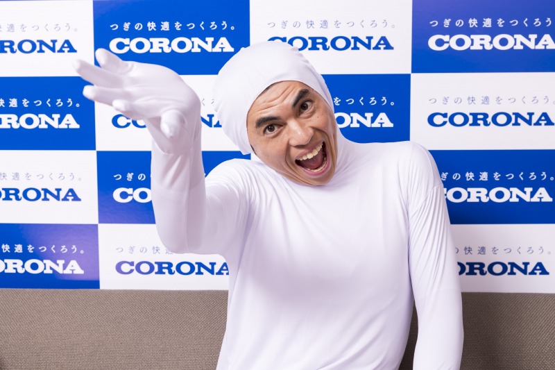Q.「暖房機」に続き、今度は「加湿器」の CM キャラクターに就任し今年で2年⽬を迎えます。今回は、全⾝⽩タイツでの撮影がメインでしたが、撮影を終えての感想を教えてください。