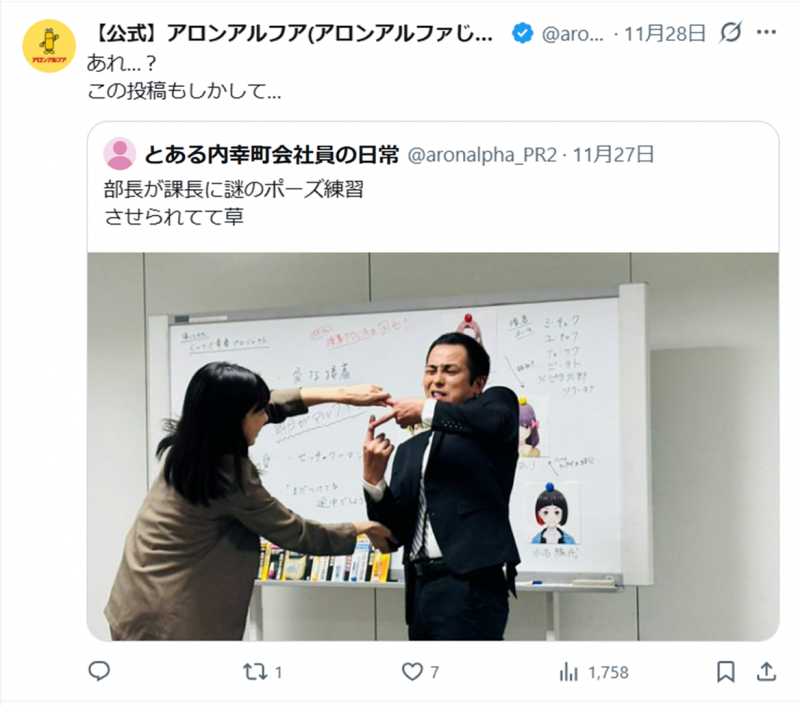 これが会社に見つかってしまうという事態が起きます。ふつうなら問題になりそうですが、会社側がまさかの公認アカウントとして認めるという、衝撃的な展開となりました!