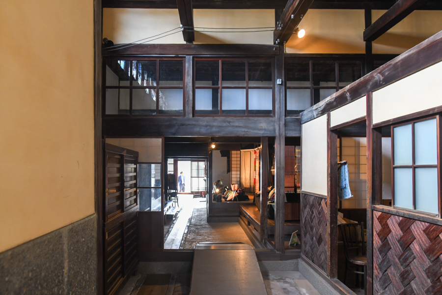 間口が狭くて奥行きが長い“うなぎの寝床”的な建物が多いのが御嶽宿の特徴。一方、明治に入り宿場町としての役割を終えると亜炭(燃料の一種)の産地として栄え、石油が普及する前の日本の近代化を支えた。栗谷本さんの解説の中には、「御嵩の炭坑がにぎわった当時、坑内で働いていた人たちが豚の内臓をスコップの上で焼いたものが、今のホルモン焼の発祥(諸説あり)」という興味深い話も。