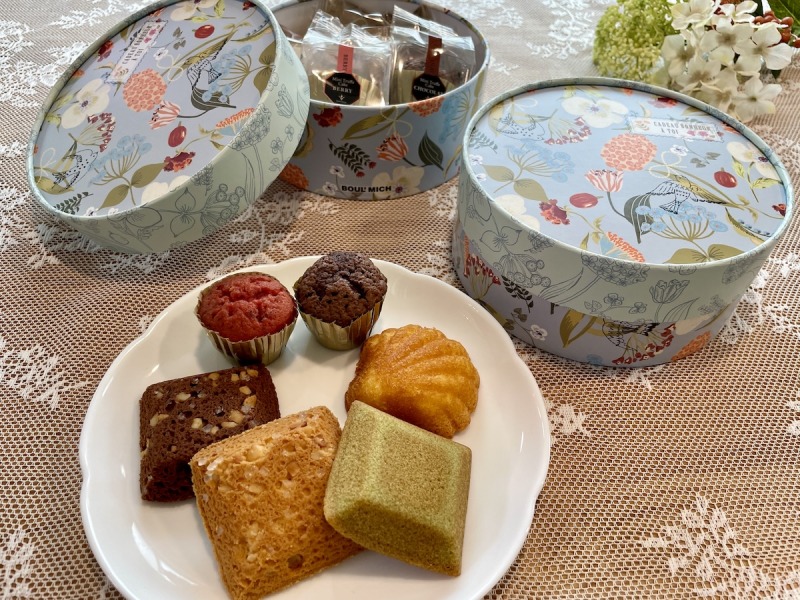 『ブールミッシュ』の人気焼き菓子を詰め込んだ限定BOX。「ミニトリュフケーキ」、「ミニトリュフケーキ(ベリー)」、「マドレーヌ」に加え、「フィナンシェ・ピスタチオ」、「ヌーヴェルガレット(バニラ、チョコ)」が入っています。「フィナンシェ・ピスタチオ」はピスタチオの濃厚な味わいが楽しめ、「ヌーヴェルガレット」はマカダミアナッツとざらめがアクセントのザクザク食感のクッキーです。異なる食感と味わいの焼き菓子が一度に楽しめる贅沢なBOXで、「何を食べようかな?」という選ぶ楽しさも提供してくれます。